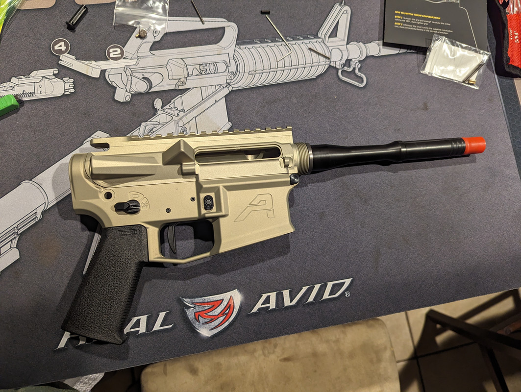 Started my honey badger clone. Still haven't bought the brace. Likely will be a Maxim CQB. Have grey AP atlas handguards to put on after I get the barrel on.