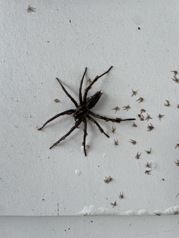 I was drunk at the in laws one night. It’s a coping mechanism, shoot me.. went out on the patio to grab a bottle of water, and saw a HUGE wolf spider.. tried to do a favor for everyone and smoosh it with my foot, but when I did, about 1000 baby spiders took off from under my foot, some going up my leg.