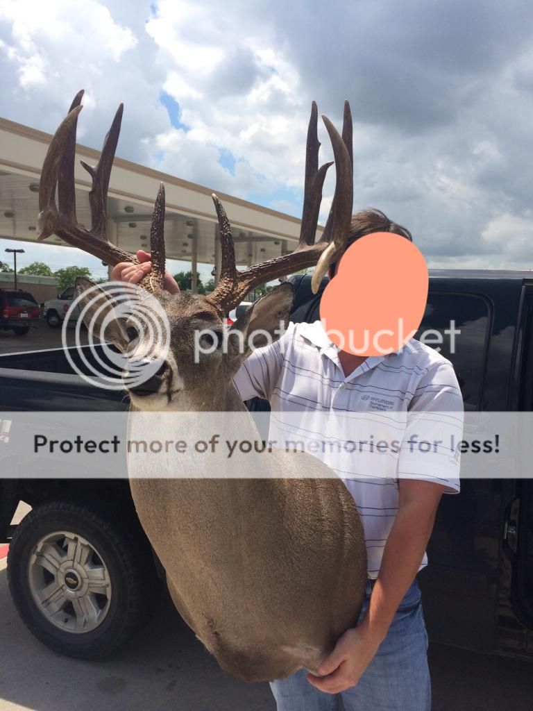 10 point with 2 drop tines... Right main beam looks to be 22"... 20.5" left main beam... 18" inside spread... Let's say the base circumference is 2.75" (that's being generous)... Math isnt really adding up.