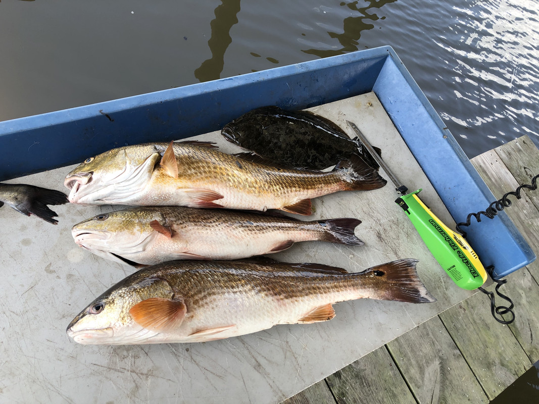 Fished the east side of the lake yesterday, water was filthy and low to start. Ended up finding a couple spots with cleaner water and managed 2 smaller flounder and an 18.5 inch red as well as a random croaker.