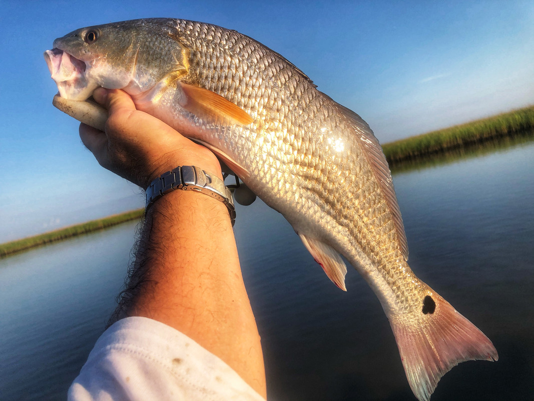 but launched at hog island and fished the marsh just above the main canal, dirty arse water and and some storms got me off the water before noon but managed of couple slots and those elusive floundaa