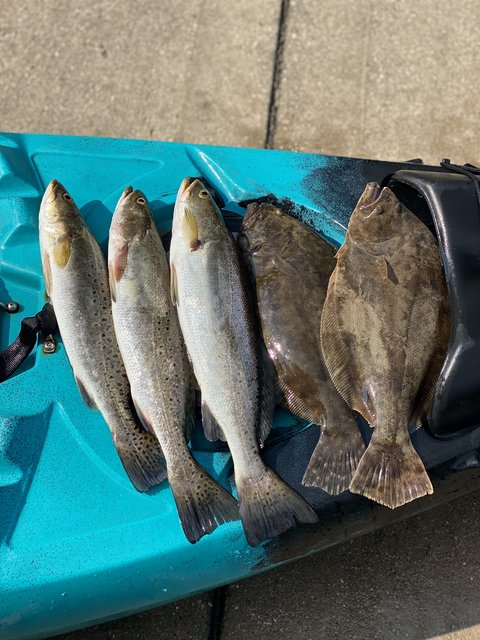Water is FINALLY starting to clear up over here in MS, after the never ending rains. Had a chance to get out for a couple hours this morning and brought home a few chunky trout and couple flounder. Caught 2 reds for the slam, but both were just a bit short at 17".