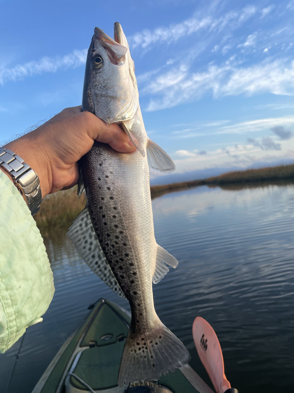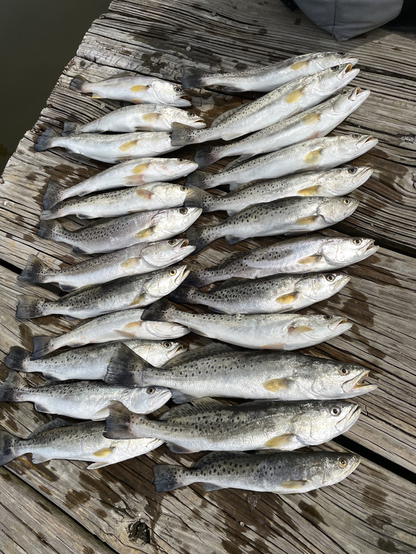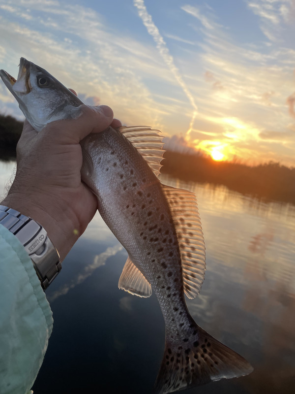 Fished all day yesterday. Morning started slow with a couple trout on topwater along the powerlines. Had one red swiped at it, but missed. Ate lunch while waiting for the tide to turn, then went look for reds to site cast. Couldn't find them, but came across some birds diving. School trout were hammering DOA under a cork. Finished with 7 in the box.