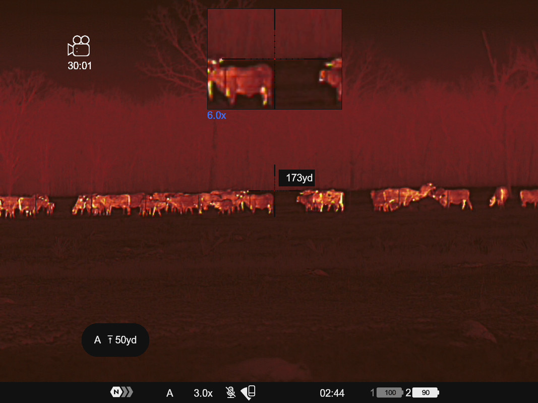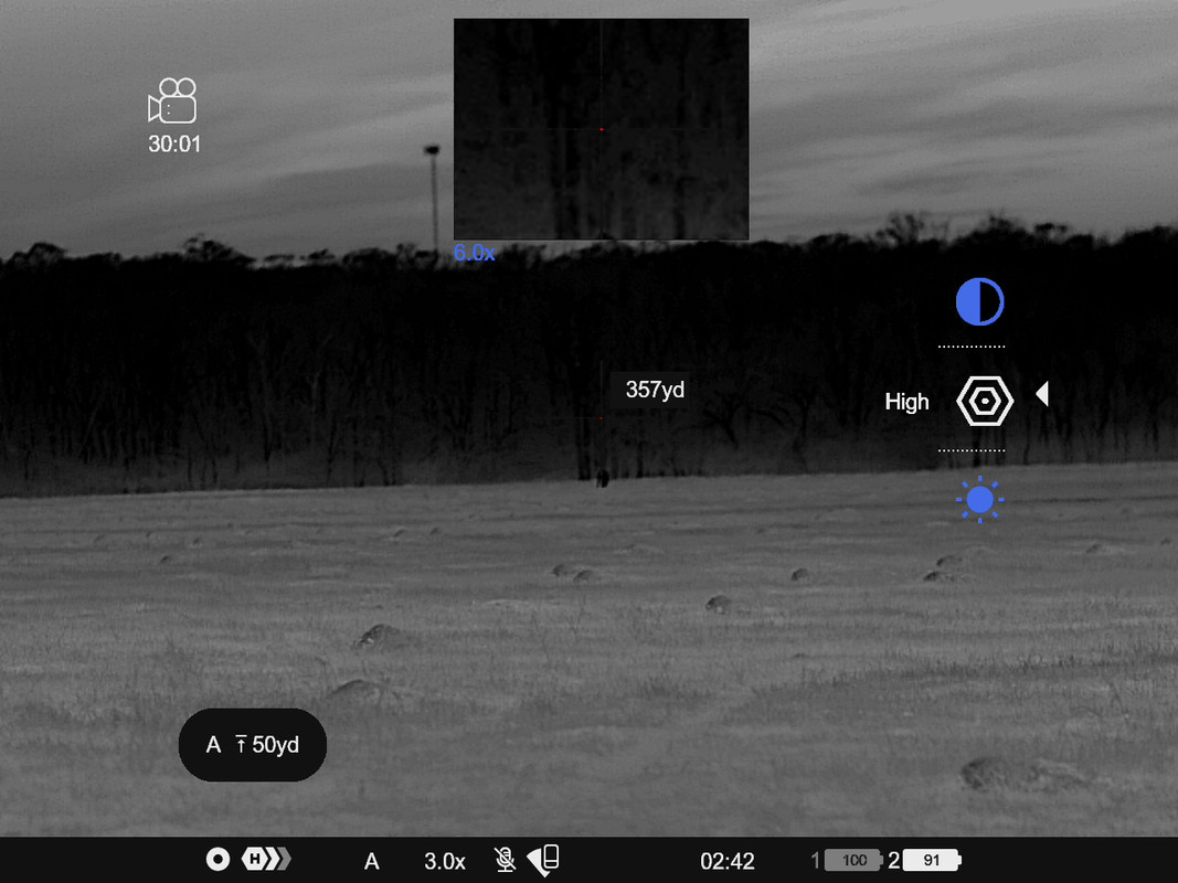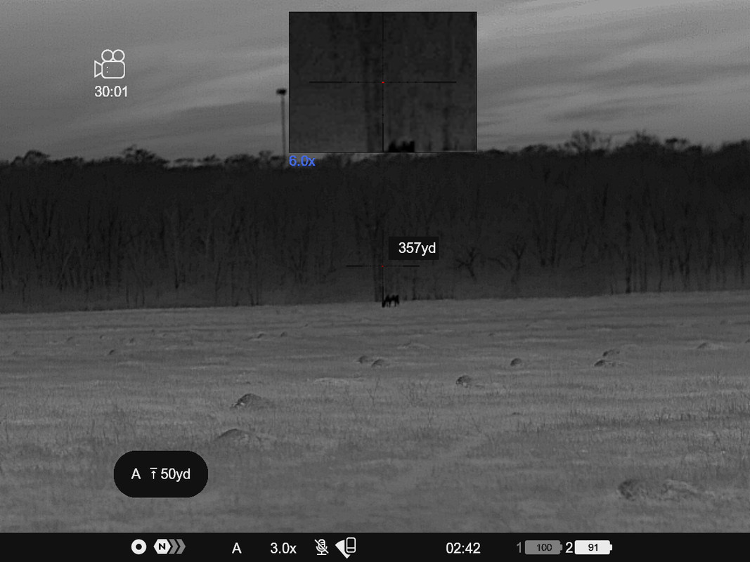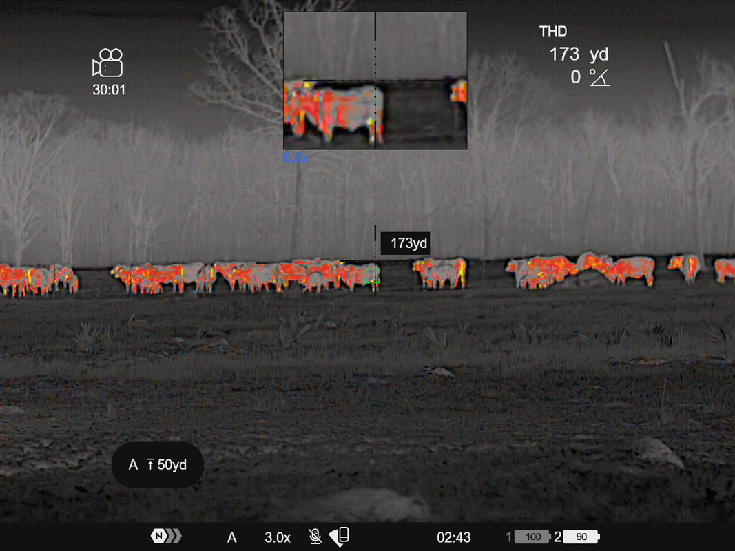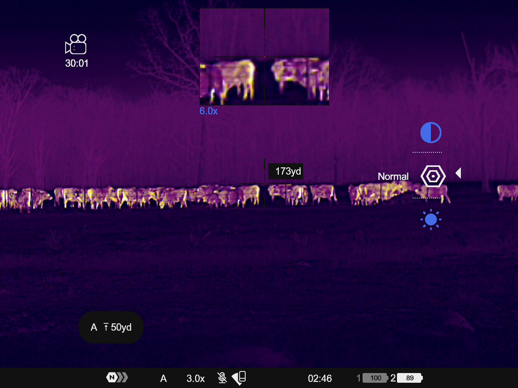 After zeroing it out, a burro was out so I ranged him with different colors and while on black hot, cycled the sensitivity amplification levels. It was a clear night and I’ll have to do it again in harsher conditions
