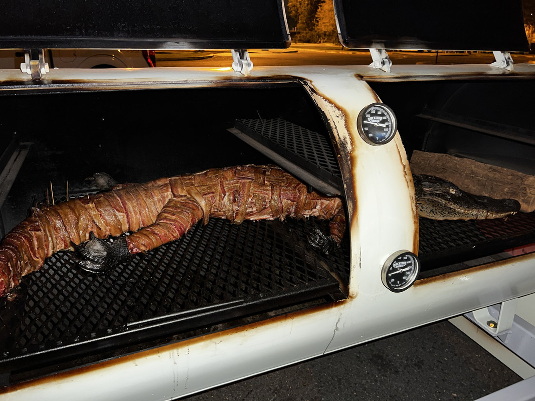 Seriously though, all our clients want gator meat, and my best advice is cook down in a sauce piquant or the like. It's a great novelty meat, not the best table fare. Got no real advice for smoking