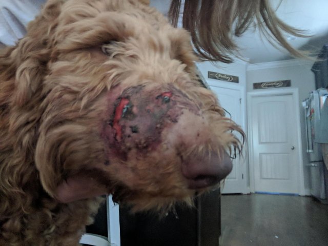 Eta: he was dripping blood like a faucet. I bought his goofy arse a dog toy snake the next week. He won't go near it. If something rattles he's gone