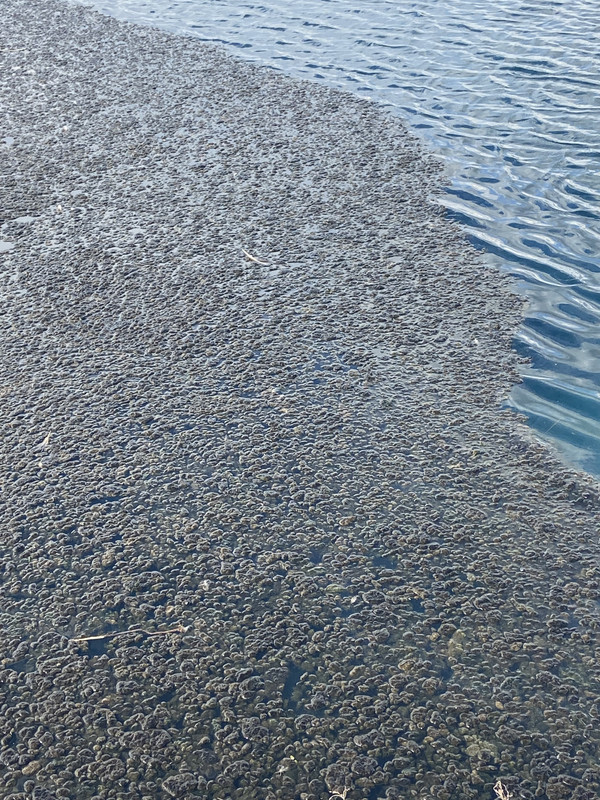 Spirogyra filamentous algae looks similar but is very slimy to the touch. It’s usually appears when water is cool.