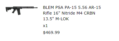 I just ordered the blemish PSA AR for $500 after taxes. Along with 1200 rounds of 5.56, 4 extra mags, and a relfex site. Spent around $1500 for everything.