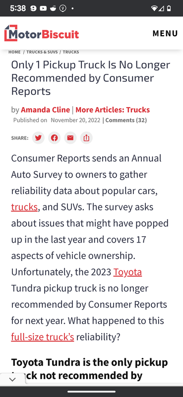 Well Car and driver does not Recommend 2023 Tundras. Don't know about 2022s except they were ranked last out of all full size trucks