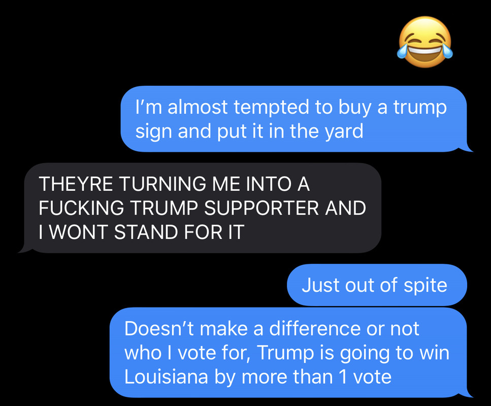 With everything that’s going on and how these moron liberals have been acting, I figured I’d share a small snippet of our text messaging yesterday.