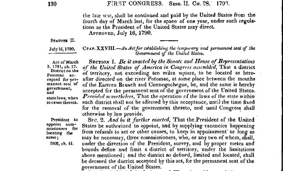 With no constitutional authority to do so, Congress created a separate form of government for the District of Columbia, a ten-mile square parcel of land (see, Acts of the Forty-first Congress,” Section 34, Session III, chapters 61 and 62).