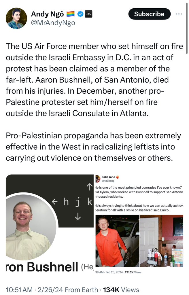 re: Active Duty USAF Airman Self Immolates outside Israeli Embassy in Protest