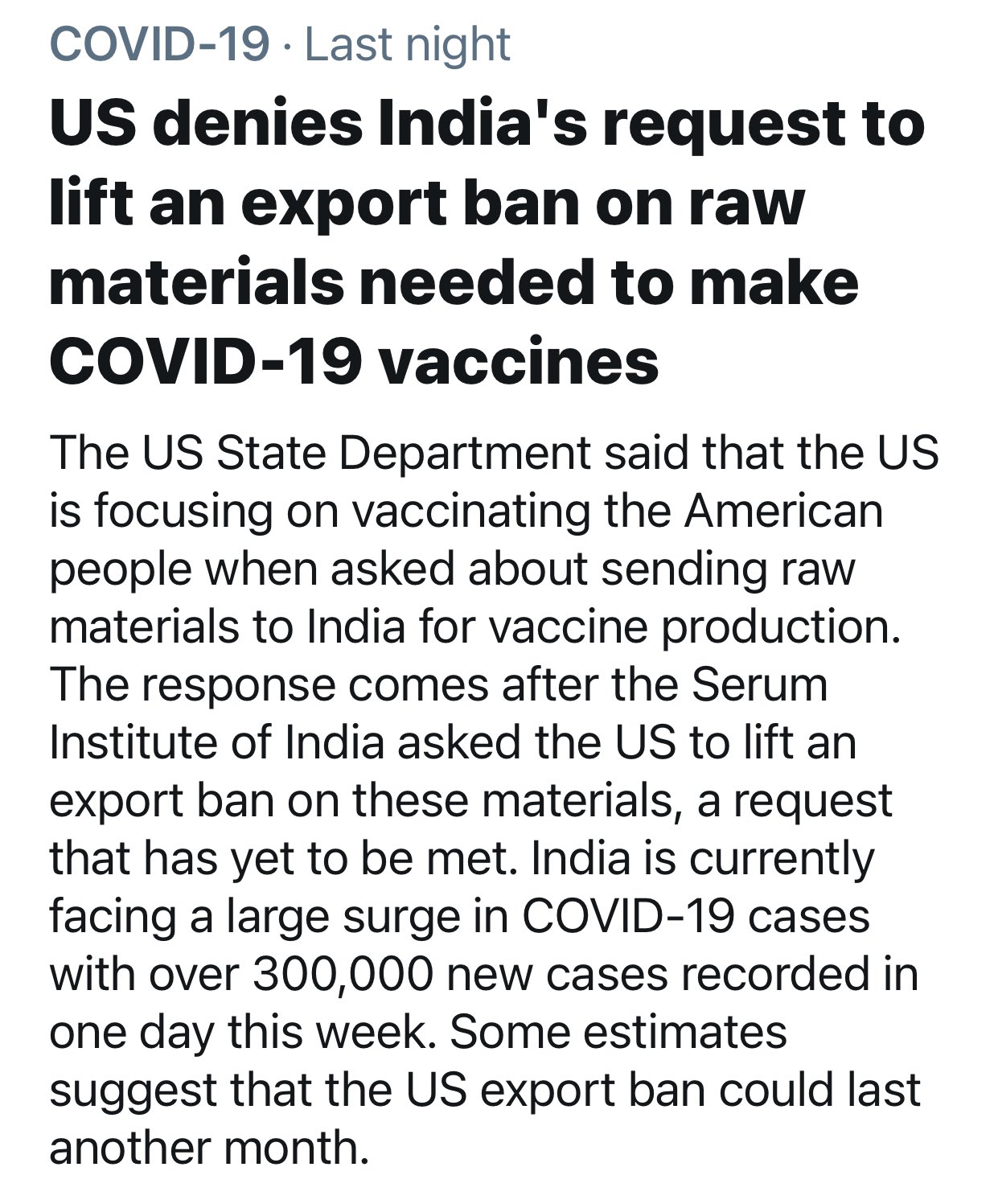 We’re sitting on 100M doses of AstraZeneca that we can’t use & that’s going bad, which should have been sent to India many weeks ago. They have every right to their rage. I’m fuming, too.