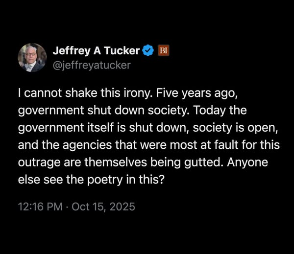 Its like no one talks about the draconian shutdowns and gross overstepping of govt power in that time. From dark Brandon to school lockdowns and vax mandates.