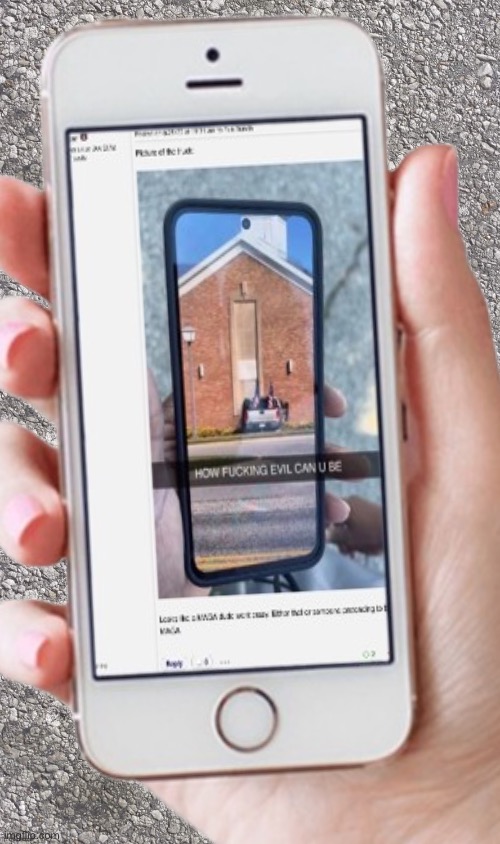 The building is turned 90 degrees so the side of the building faces McCandish Road. If the photo is real the truck went into the side of the building - potentially directly into the sanctuary area.