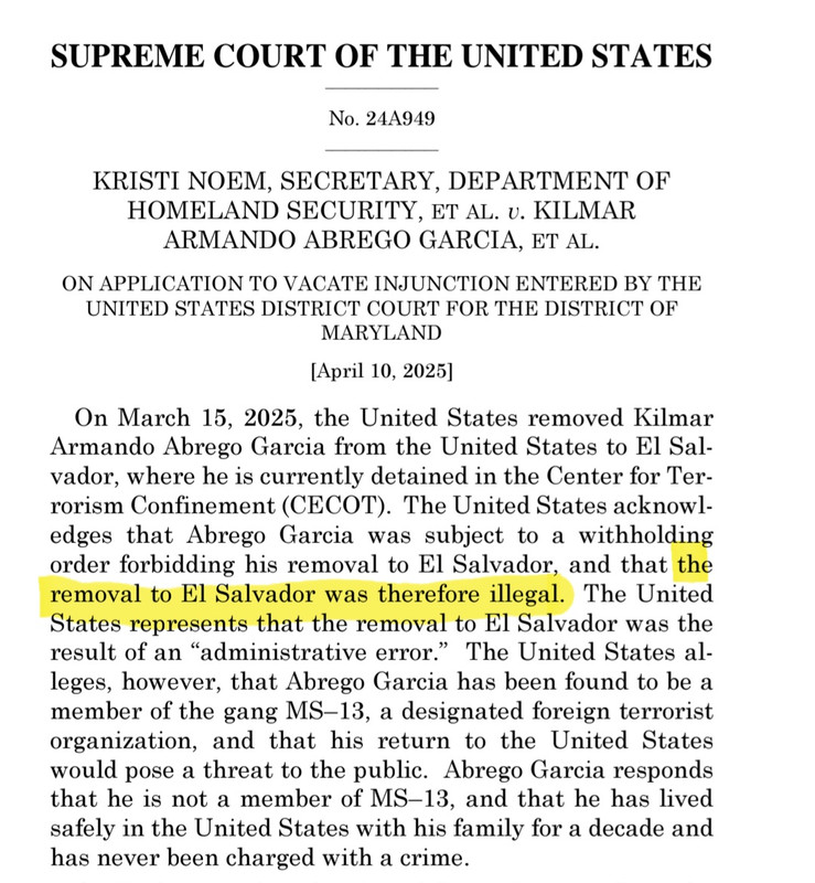 You're entitled to your opinion, but that's not even remotely what the Supreme Court held in this case. Read the decision. They unanimously held that Abrego Garcia was illegally deported to El Salvador.