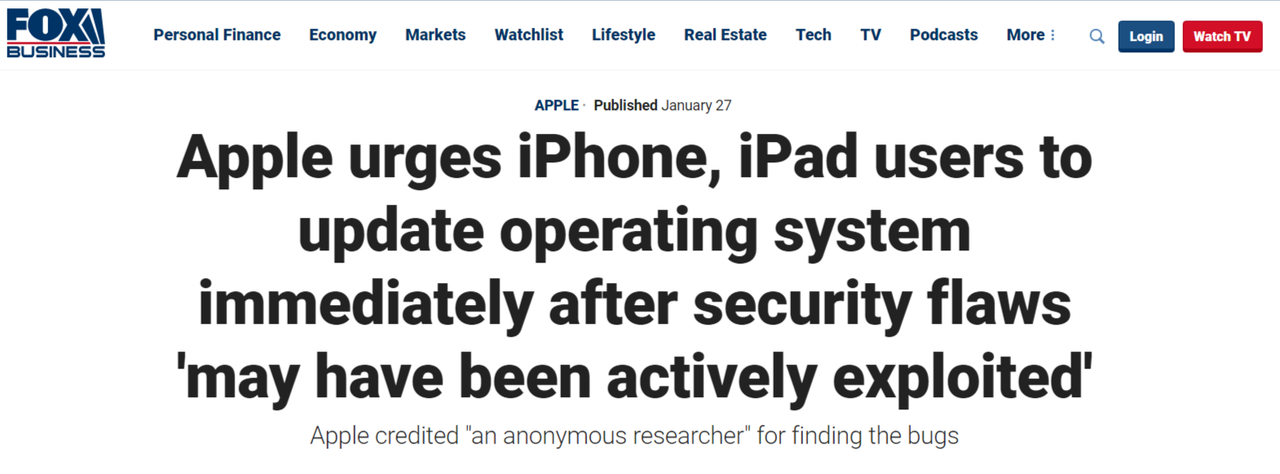 ABC nightly news mentioned the Apple Update other day and how everyone needs to update it.