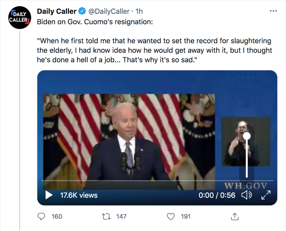 re: Biden on Cuomo resigning “He’s done a hell of a job, and that’s why it’s so sad.”