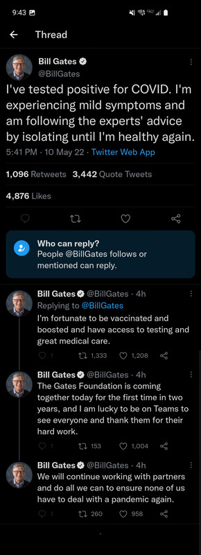 Hopefully Bill Gates catching COVID will help Bill Gates in his quest to reduce the earth’s population by removing Bill Gates from earth’s population.