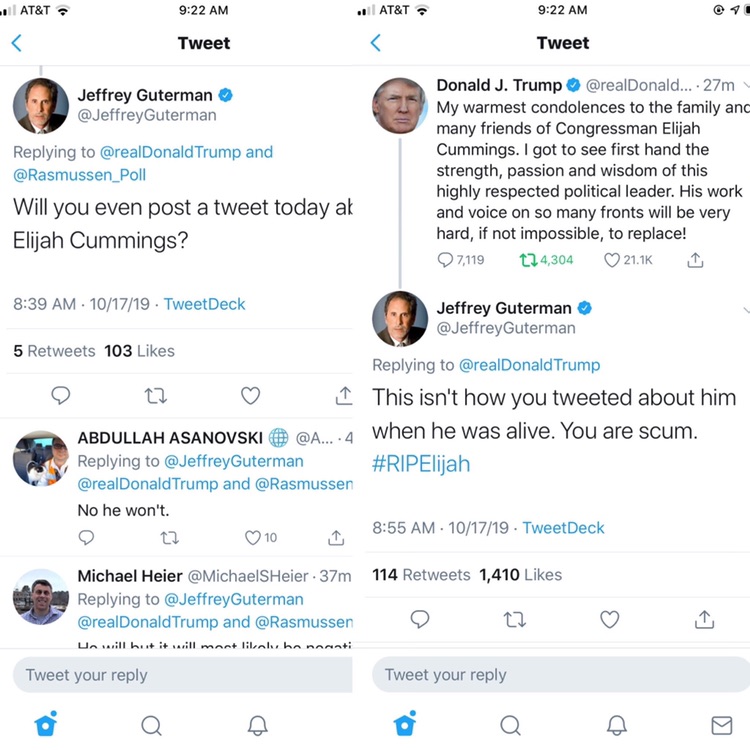 My warmest condolences to the family and many friends of Congressman Elijah Cummings. I got to see first hand the strength, passion and wisdom of this highly respected political leader. His work and voice on so many fronts will be very hard, if not impossible, to replace!