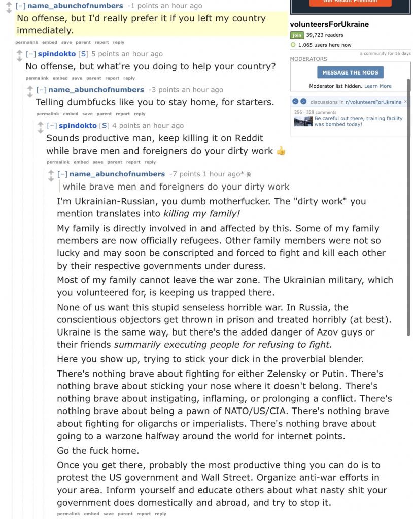 Ukrainian tries to talk sense into Redditors, downvoted away