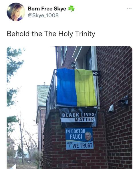 My local unitarian church has a Ukraine flag, a pink and blue (trans?) Flag, a BLM poster, and the diode electronic billboard informs passers-by that in-person worship requires proof of vaccination