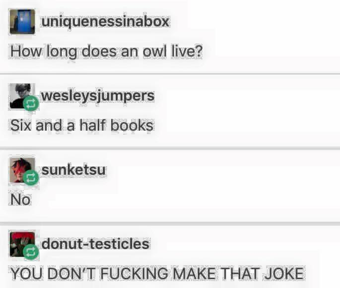 Yes. The owl gets shot and made into a gumbo by Hogwarts’ lone Cajun student. He’s the founder of House Firstyoumakearoux.