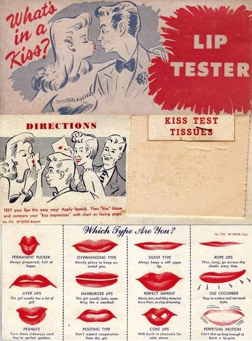Lipstick Kiss Tester, updated to include liberal man (ole cucumber lips, pouting lips, and coke lips).