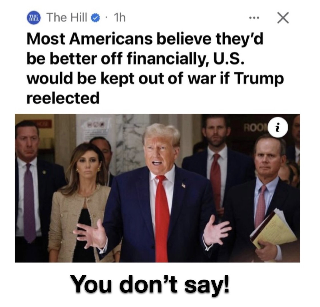 Most Americans believe they would be better off financially, US would be kept out of war if Trump reelected