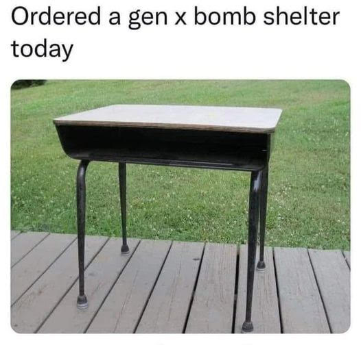 Should be a Boomer bomb shelter... Early Gen Xer here, never once in my grammar school days did we do bomb duck and cover drills.