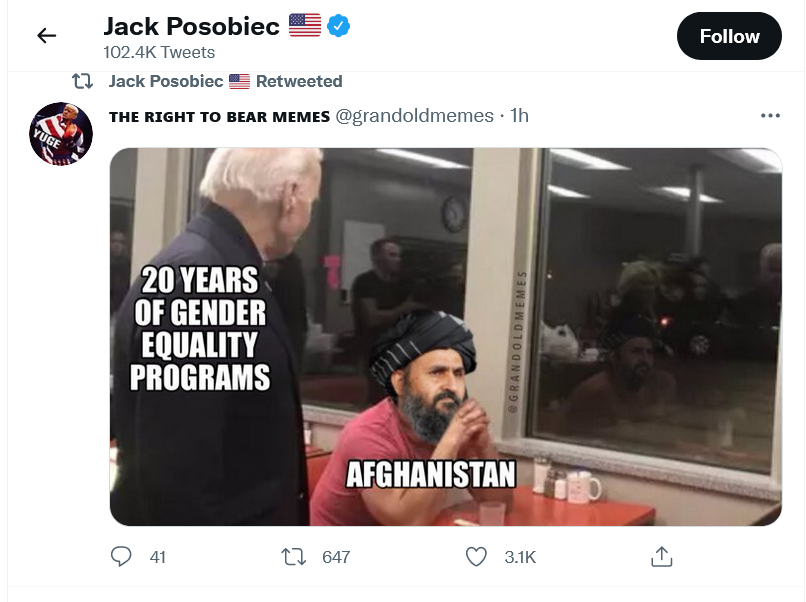 Not a meme, but I finally found a pic of Afghan refugees that includes women & kids.