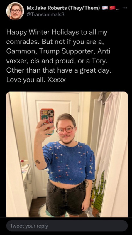 I would hate everything too if I had a beard, mustache, and one boob coming out of my appendix.