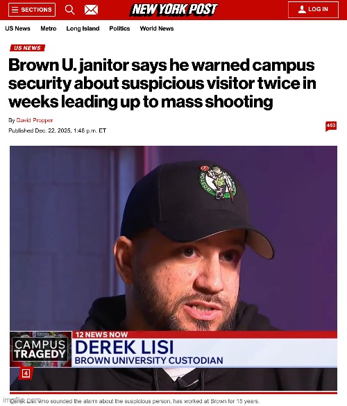 And Brown’s campus security then apparently failed to act on recurrent reports of a suspicious person on campus?