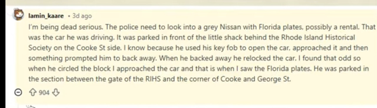 That affidavit certainly must constitute perjury, because I was assured by the vast majority of this forum that the Providence police were doing absolutely nothing to find and track the killer.