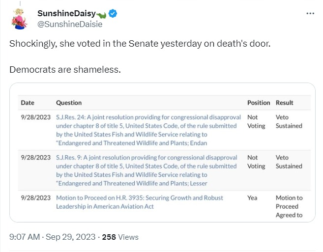 re: CA. SENATOR Feinstein dead 90- but her staff said she was fit to serve
