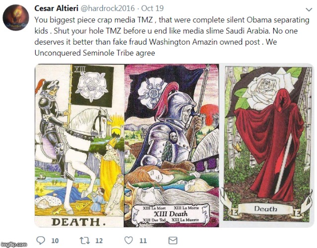 Looks like he threatened to have The Fonz and Richie Cunningham killed in one of his tweets