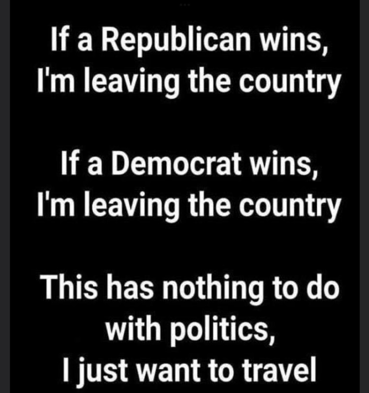 All those liberals are talking big now, but I wish we could somehow get a legal document that would require them to leave the country the second Trump is announced the winner!