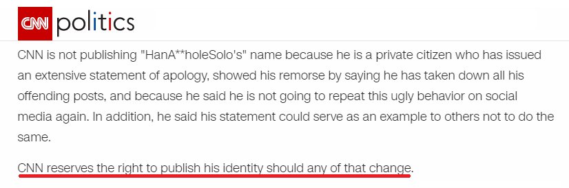 .@CNN your beef was with @realDonaldTrump, NOT a private citizen. You just set a dangerous precedent for every individual to be uncovered.