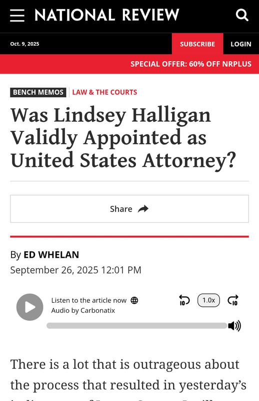 re: Comey case will be dismissed b/c Halligan's appointment was unlawful