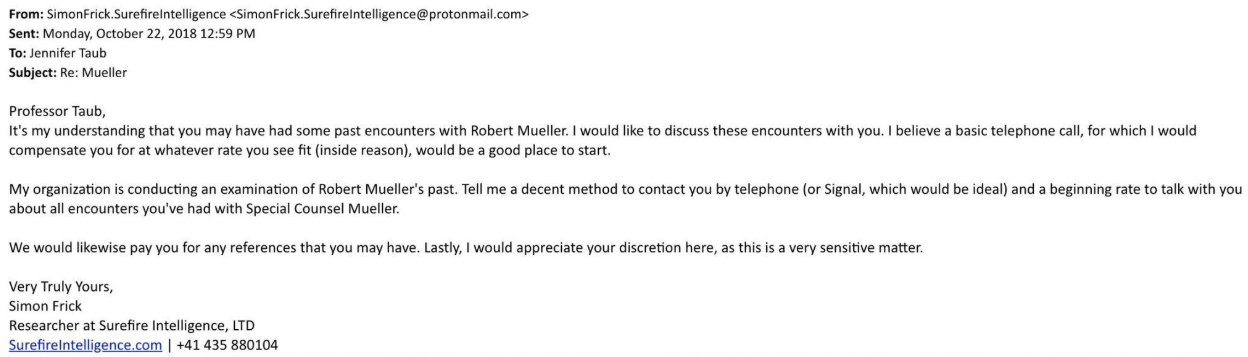 Mueller has known that there was an accuser for a few weeks. He found out who was behind it and referred it to the FBI based off of a female source that claimed that Surefire Intelligence bribed her to fabricate the allegations. Turns out that the female in question is completely imaginary.