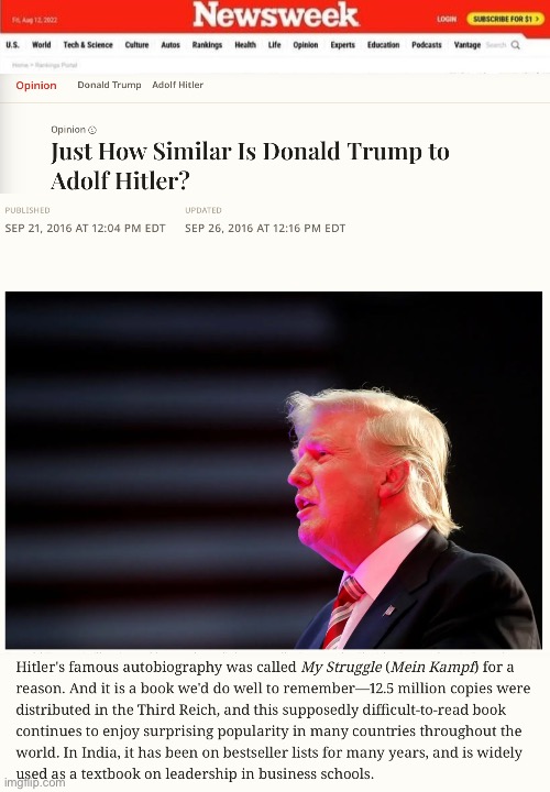 You sure about that? The professional opinion class in the MSM certainly have been telling us that Trump is Hitler for the past ten years.