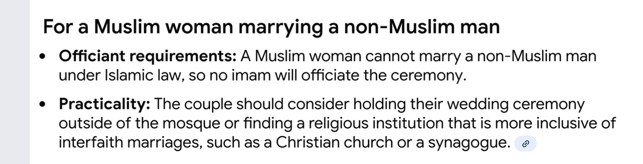 Their wedding was officiated by an imam and was marked "religious" on the license.