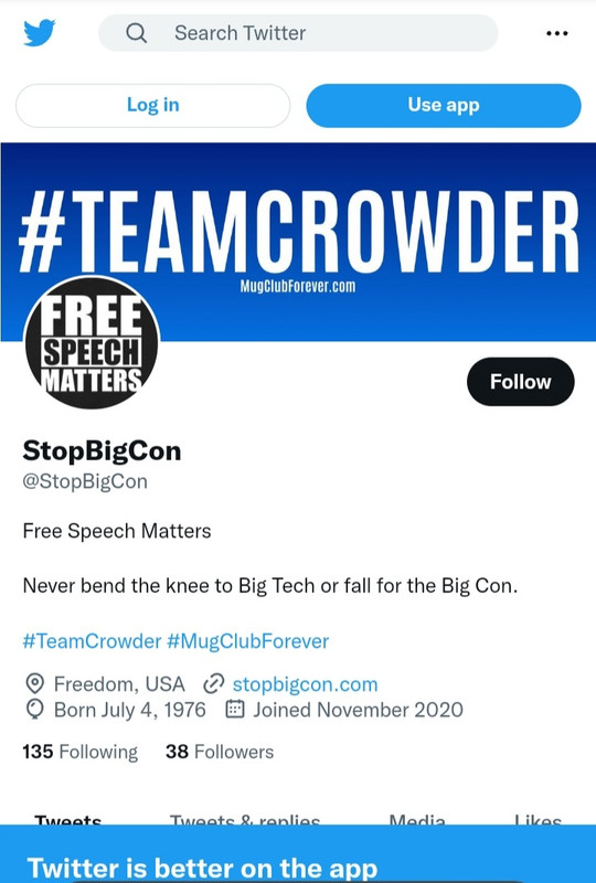This was always Crowder's backup plan. That is why he registered the website back in mid-DEC and the twitter handle in 2020.