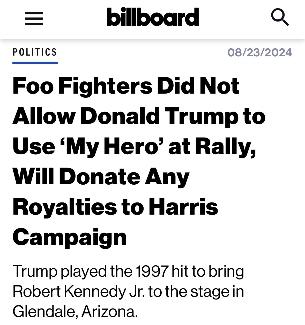 I like the Foo Fighters. I don’t have to agree with their politics to enjoy their music.