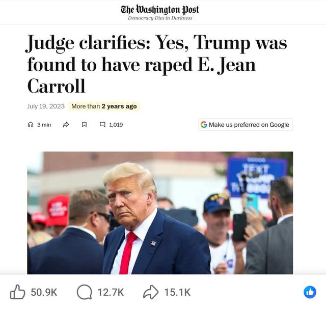 I simply provided the accurate information, that trump was found to have raped in a civil trial.
