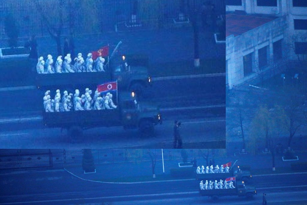 #DPRK soldiers participating in parade today seen potentially wearing NBC suits, however picture is blurry.