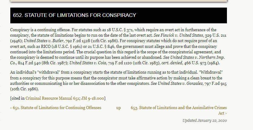 Immaterial. Actions taken in furtherance of criminal conspiracy, or taken to conceal such actions resets the SOL.