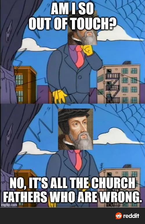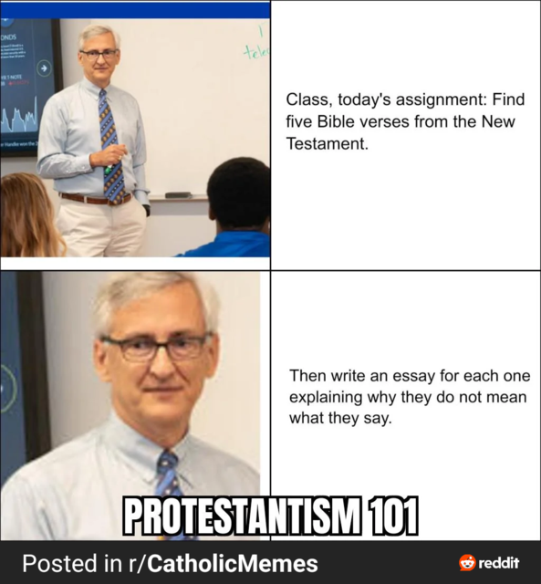 Good meme! I should make one that says the same thing but about the church fathers and Catholics
