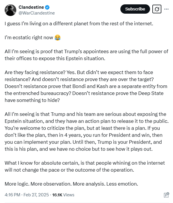 Exactly why they came up with the stupid "SDNY FBI is FIGHTING us and we need KASH and BONDI to FIGHT back!" narrative.