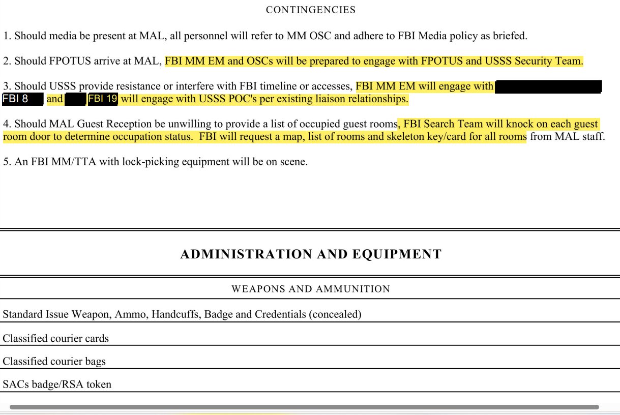 Once again, while this whole thing is bullshite, FBI (who I have little respect for) did not go there to have a gun fight with Trump's Secret Service detail.
